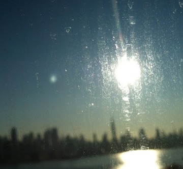 This blast of cold, clear light is what the New York City skyline was made for; and the drips of caked-on old snow and freezing rain, on the bus window I shot through, is what reminds you that you are looking at New York. When you live here you know that dirt is part of the deal; and as much as it can make me crazy to get out from time to time, at the moment I shot this picture it made me so happy that I couldn't imagine the world without it.